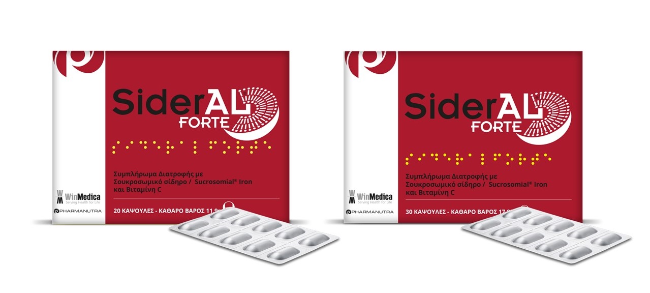 1.Papaioannou M. Gatsa E. Iron deficiency anemia, Heama 2013; 4(1):1-12, 2. SiderAL® Forte product instruction sheet, 3. Pisani A. et al, Nephrol Dial Transplant,2014;0:1-8 (doi:10.1093/ndt/gfu357), 4. Tarantino G et al, Blood,2015;126(23):4561, 5. Brilli E. et al Blood, 2016;128:3618, 6. Fabiano A. et al, Eur. J. Pharmac Scien,2018;111:425-4316, 7. EU Register on nutrition and health claims.